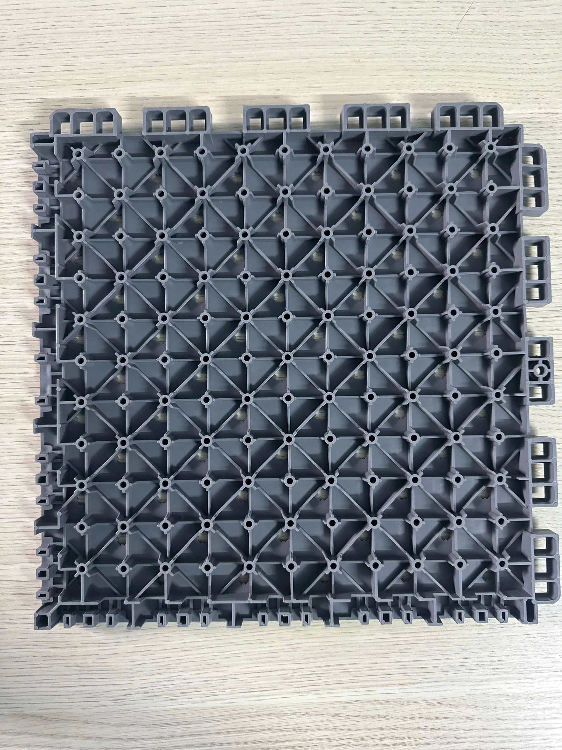 - Thiết kế thông minh: Hệ thống khóa liên kết đàn hồi 360 độ giúp lắp ghép chắc chắn, đồng thời xử lý hiệu quả vấn đề giãn nở do nhiệt, ngăn ngừa biến dạng và đảm bảo độ chính xác khi bóng nảy.