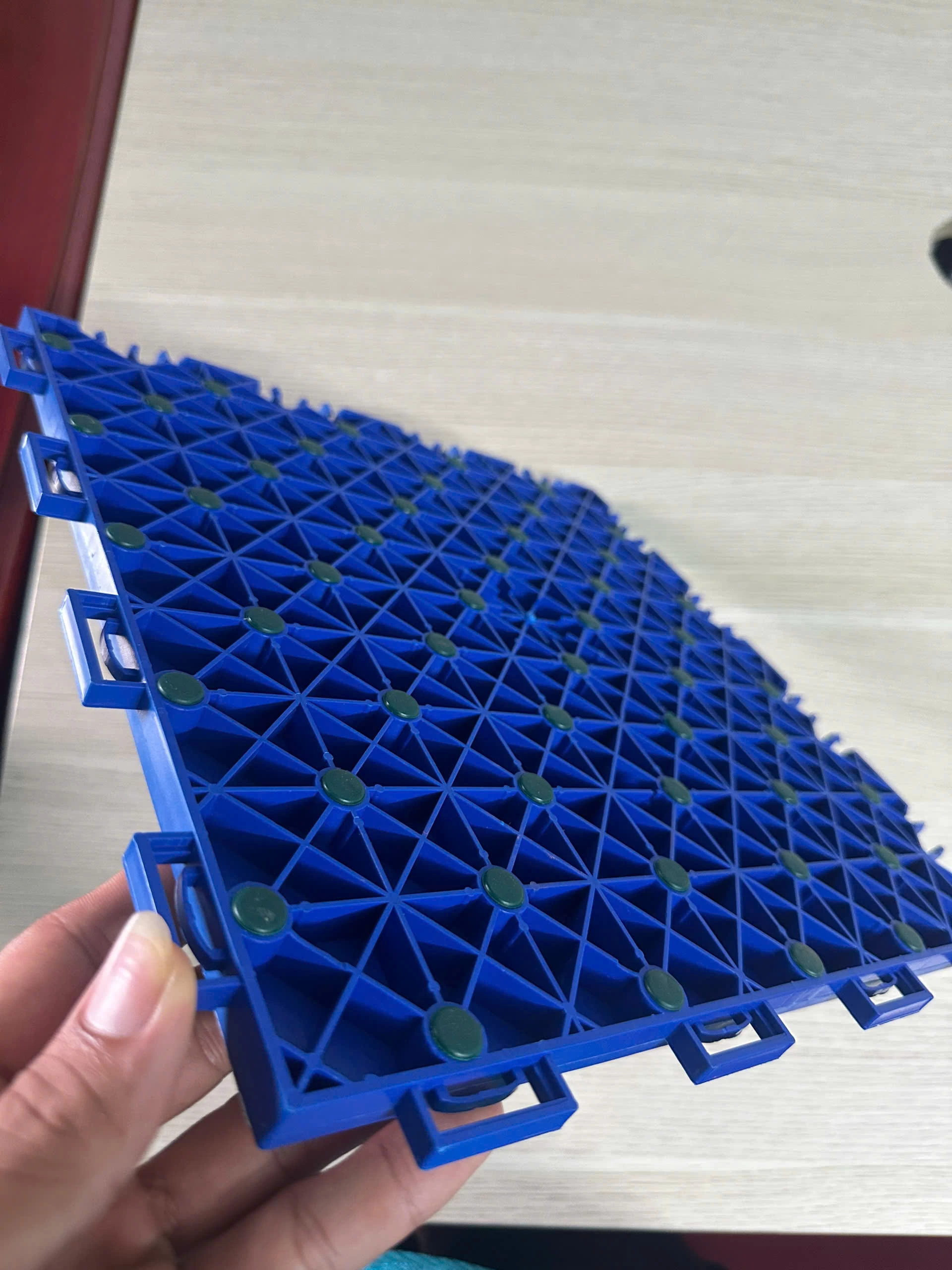 - Cấu trúc bề mặt và kết nối: Bề mặt có hoa văn dạng ô vuông, được xử lý nhám để chống trượt; kết nối bằng khóa cài tự co giãn, giúp lắp đặt chắc chắn và chống biến dạng do giãn nở nhiệt.