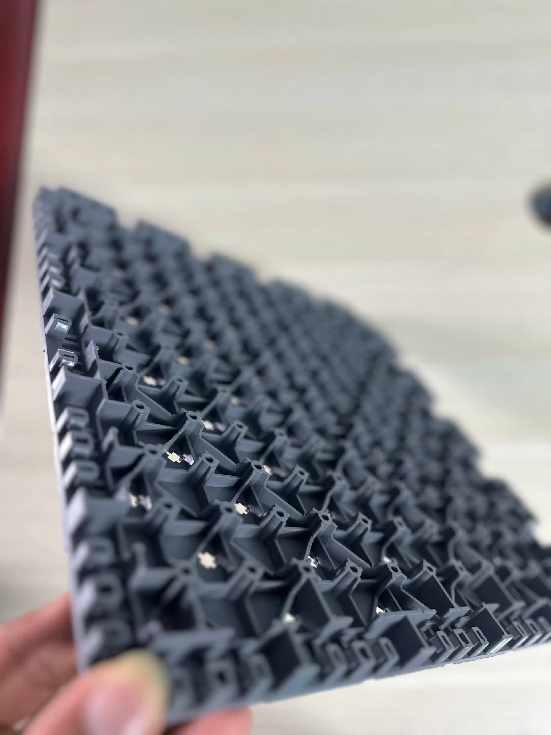 - Cấu tạo và tính năng: Gồm lớp bề mặt “ngôi sao” chống trượt, lớp đàn hồi với các trụ đàn hồi và đệm cao su giúp giảm chấn và tăng độ bám, cùng lớp hỗ trợ gia cường đảm bảo độ cứng và độ nảy.