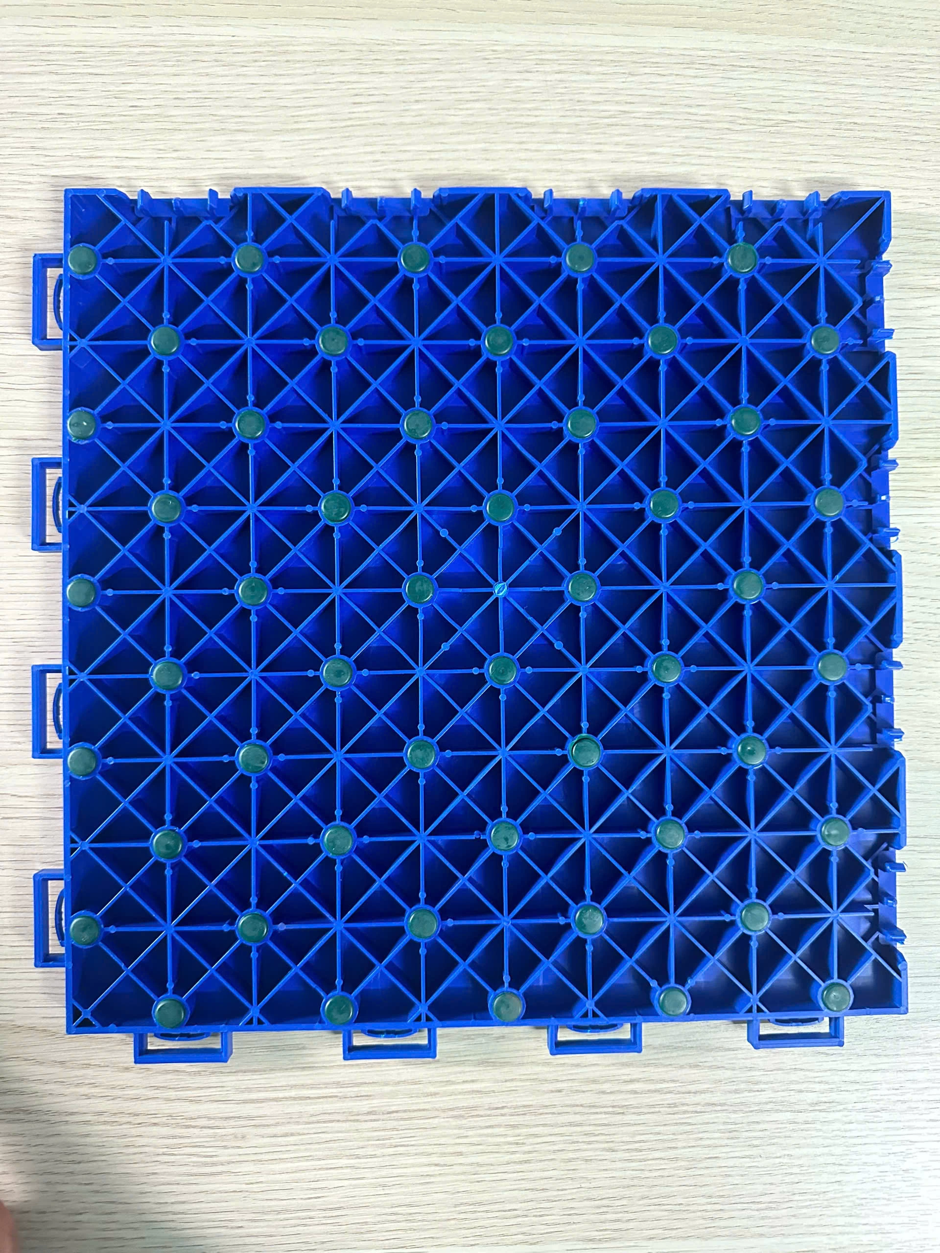 - Cấu trúc bề mặt và kết nối: Bề mặt có hoa văn dạng ô vuông, được xử lý nhám để chống trượt; kết nối bằng khóa cài tự co giãn, giúp lắp đặt chắc chắn và chống biến dạng do giãn nở nhiệt.